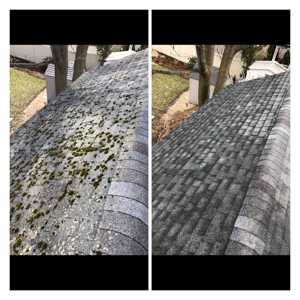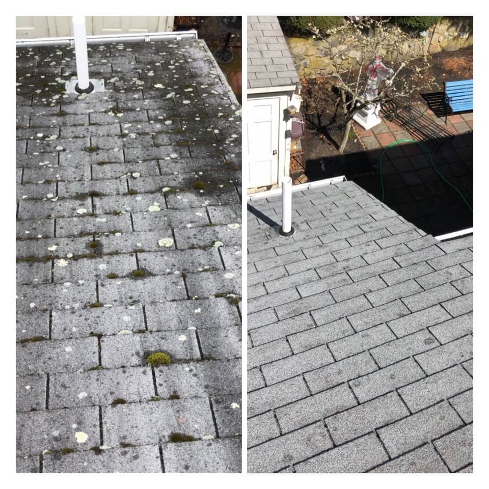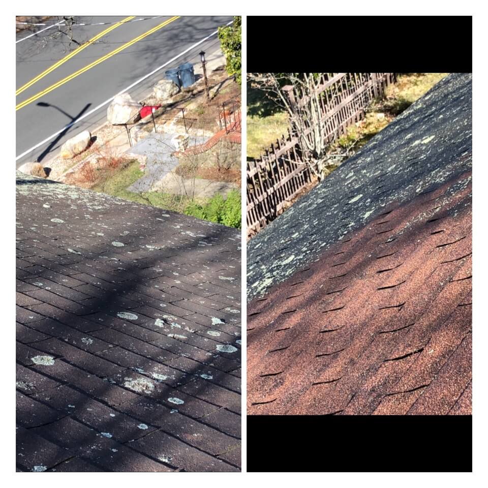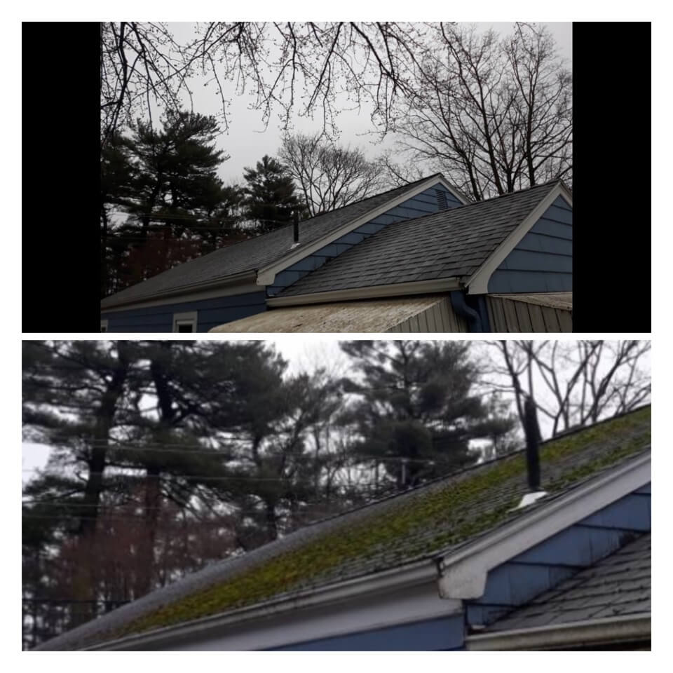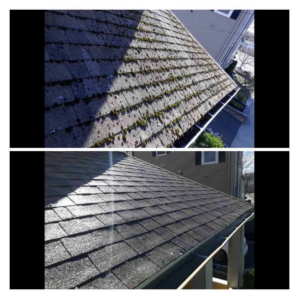HiCleaners is the most experienced company in Melrose, MA that deals with roof washing and roof soft washing. All of our employees are trained to recognize precise solution mixing ratios to provide you with the safest and most effective soft washing service. Roofs are a commonly neglected part of a house due to the fact that most people don’t have ladders to access it, so it is very easy to just leave it alone and forget about problems that may start to arise. Just like many home owners, discoloration and small bits of moss on a roof can be overlooked because of the misconception that it is just aesthetic. However, it isn’t just aesthetic, the moss slowly lifts the granules off the shingles which in turn shorten the life of the shingle. The moss also spreads, just like any bacteria if it is left alone for too long, it can quickly become a problem that spirals out of control. Call HiCleaners for a free quote, we only use the most advanced eco-friendly solutions and equipment to make sure the job is done right, for the safety of the employees, your plants, grass, pets, and children.